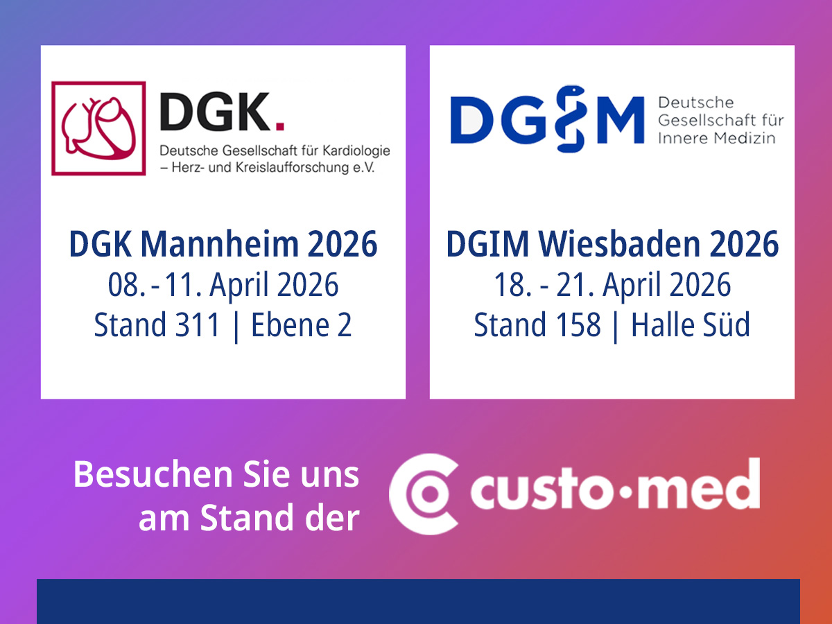 Wie in vorangegangenen Jahren sind wir im April wieder zusammen mit unserem langjährigen Partner custo med auf zwei Messen vertreten: